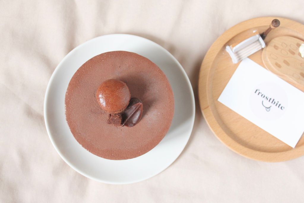 選用70.5%比利時巧克力,及法芙娜可可粉製作。整體吃起來微甜微苦。上層的冰淇淋入口即化,底層的經典巧克力蛋糕在冷凍狀態下吃起來格外紮實,而中間藏了一層薄薄的巧克力脆片,會給人眼睛一亮的口感。